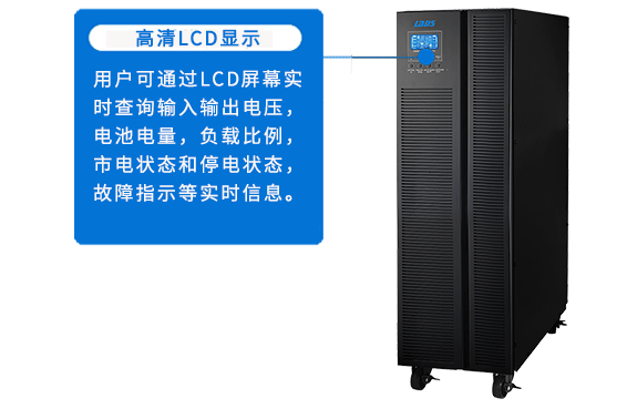 用戶可通過LCD屏幕實時查詢輸入輸出電壓,電池電量,負載比例,市電狀態和停電狀態,故障指示等實時信息。