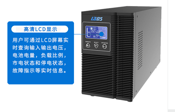 用戶可通過LCD屏幕實時查詢輸入輸出電壓,電池電量,負載比例,市電狀態和停電狀態,故障指示等實時信息。