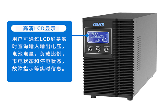 用戶可通過LCD屏幕實時查詢輸入輸出電壓,電池電量,負載比例,市電狀態和停電狀態,故障指示等實時信息。