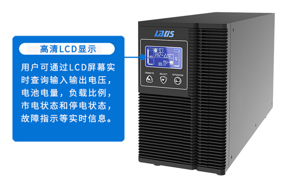 用戶可通過LCD屏幕實時查詢輸入輸出電壓,電池電量,負(fù)載比例,市電狀態(tài)和停電狀態(tài),故障指示等實時信息。