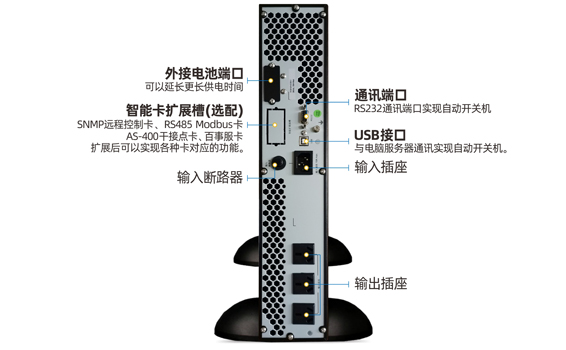 可安裝至普通的網絡機柜、服務器機柜等里面工作,節省空間。該機型占用空間高度為2U,內置蓄電池,停電后延時10分鐘左右。