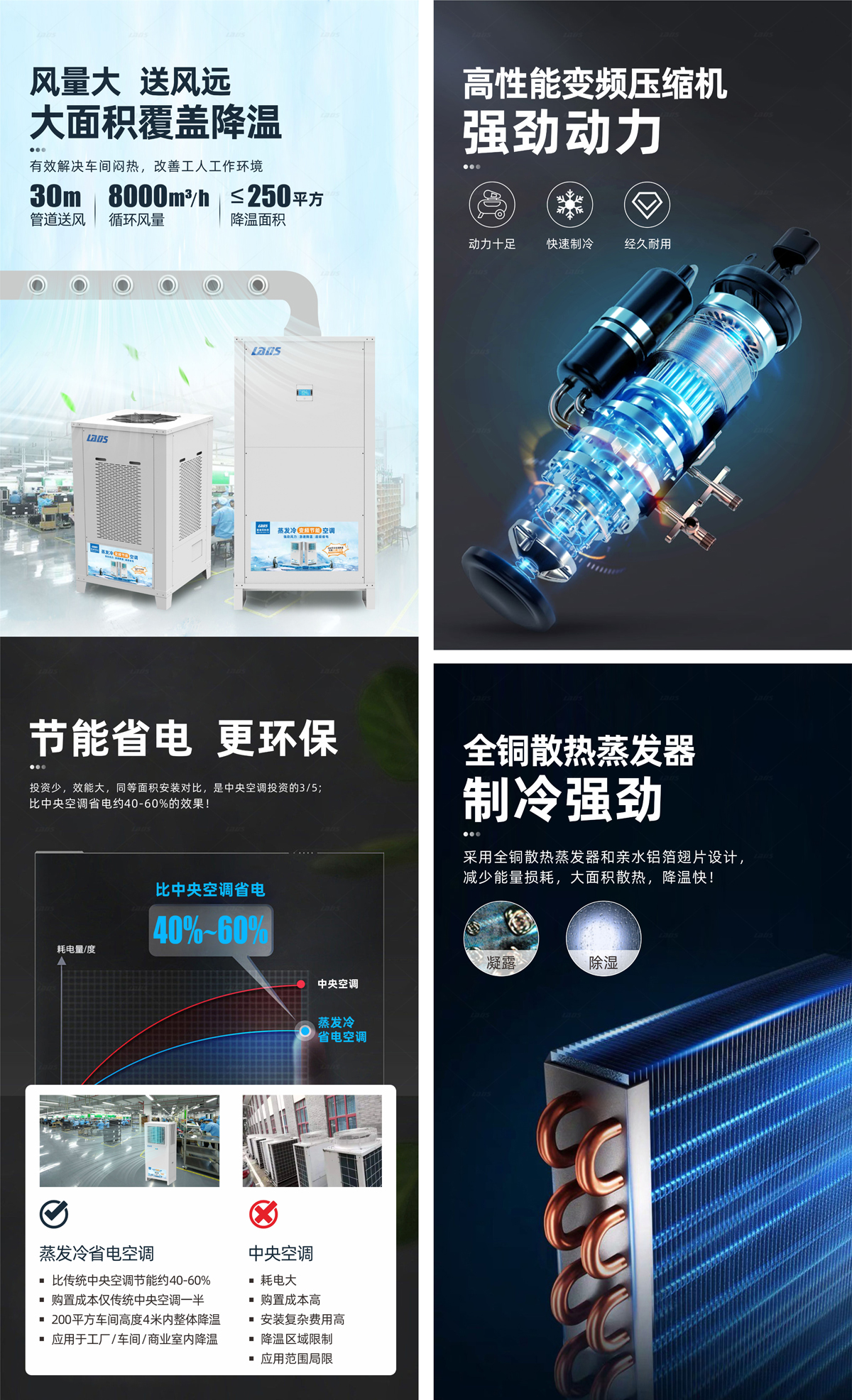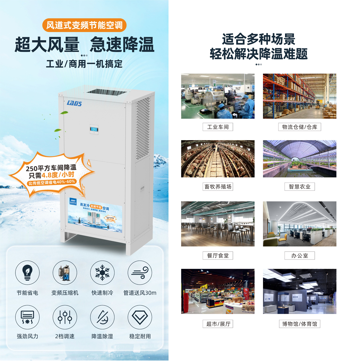 雷迪司管道送風式蒸發冷變頻節能省電空調